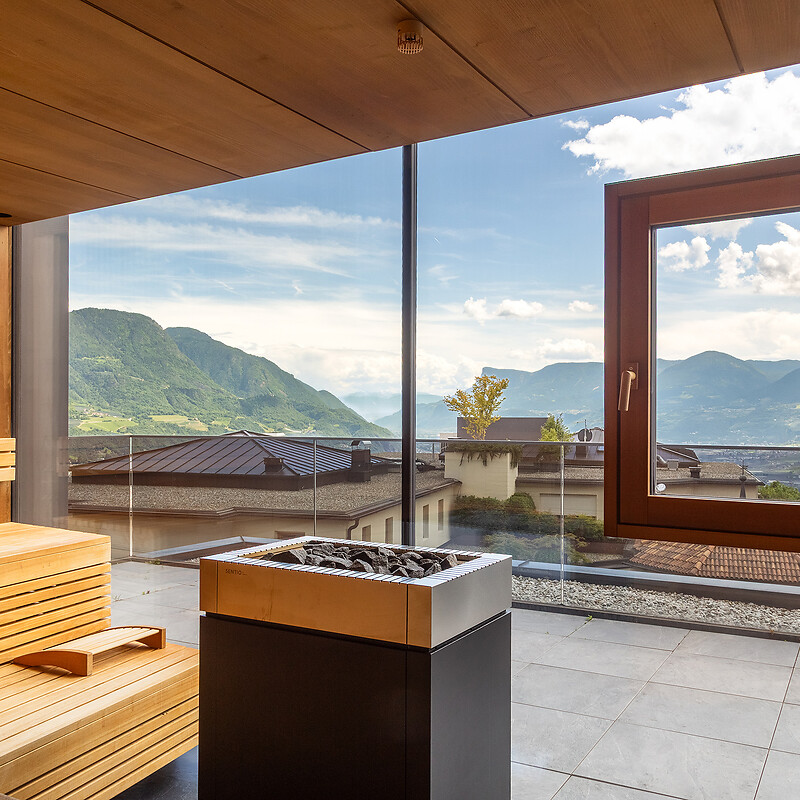 Im Wellnessbereich in unserer Residence gleich neben dem Hotel Kessler erwartet Sie eine weitere Finnische Sauna, diesmal mit fantastischer Aussicht auf die Südtiroler Bergwelt. Gegen Aufpreis auch von Gästen des Hotels nutzbar.