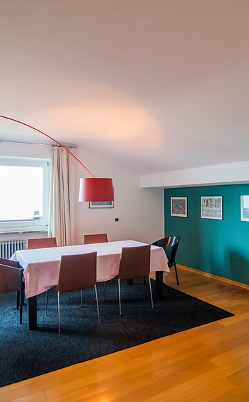 Die Ferienwohnung Laugen umfasst 2 Schlafzimmer und 2 Badezimmer, außerdem eine Küche, Wohnzimmer und Fernsehzimmer. Sie nimmt die gesamte 3. Etage der Residence ein und bietet einen fantastischen Panoramablick auf das Meraner Land. Die Wohnung ist für bis zu 6 Personen geeignet - die Preise verstehen sich pro Tag für zwei Personen, jede weitere Person zahlt €50.- pro Tag. Frühstück mit Aufpreis dazu buchbar.