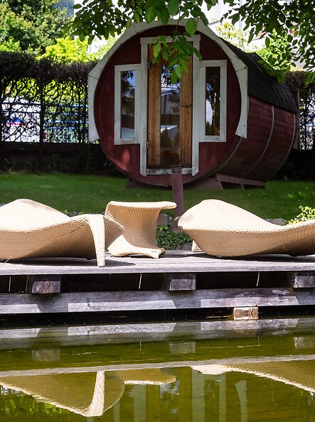 If you're looking for a natural bathing experience, you'll love our natural swimming pond! Completely without chlorine or chemicals, featuring romantic water lilies and shimmering dragonflies, nestled in our Mediterranean garden, the pond invites you to a relaxing refreshment. And afterwards, you can choose to snooze in the sun on the small wooden platform by the lake or in the shade under the tall trees in the garden.