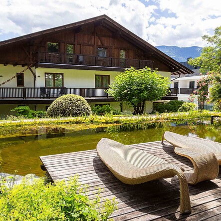 As early as spring, it is warm enough in the village of Tirol for a dip in the pool - and it stays that way until well into autumn. In summer, cooling off in the fresh water in the afternoon is particularly pleasant, whether after a long hike, bike tour, or extensive city trip to Meran. As a guest of our wellness hotel in South Tyrol or the residence, you have access to a natural bathing pond and a classic swimming pool in our sunny panoramic garden. At the beginning and end of the swimming season, our pool is heated, ensuring the temperature always remains a comfortable 28 degrees.