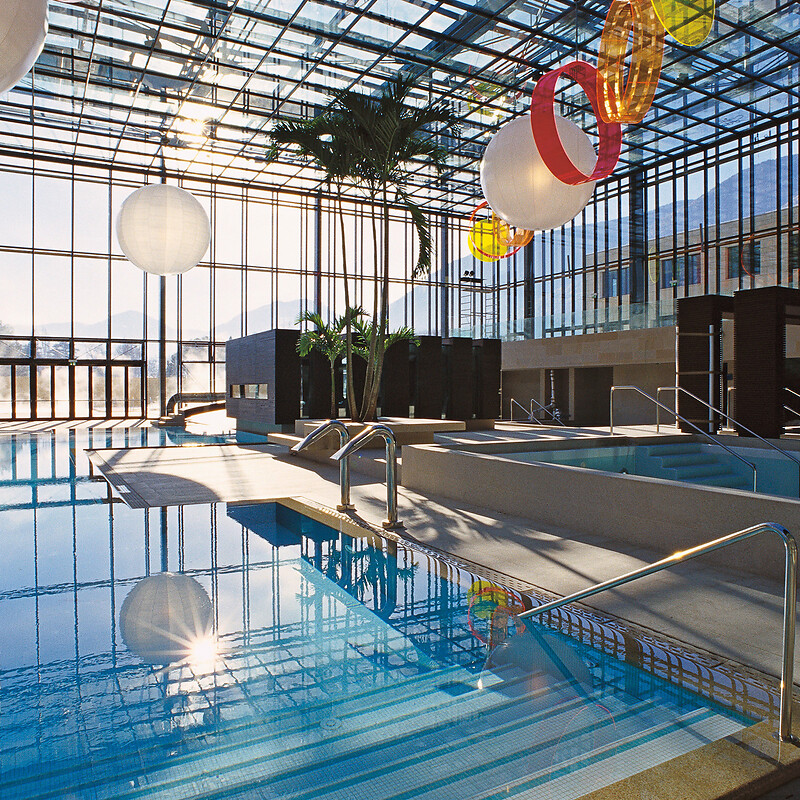 Progettato nel 2005 dal famoso architetto Matteo Thun, il nuovo centro termale di Merano offre un'ampia gamma di servizi balneari e di benessere: 25 piscine, distribuite tra l'interno e l'esterno, un ampio parco, un'esclusiva area sauna, 26 sale trattamenti con un'ampia gamma di massaggi, bagni e trattamenti di bellezza con prodotti naturali di alta qualità dell'Alto Adige, oltre a un crescente offerta di salute e fitness.